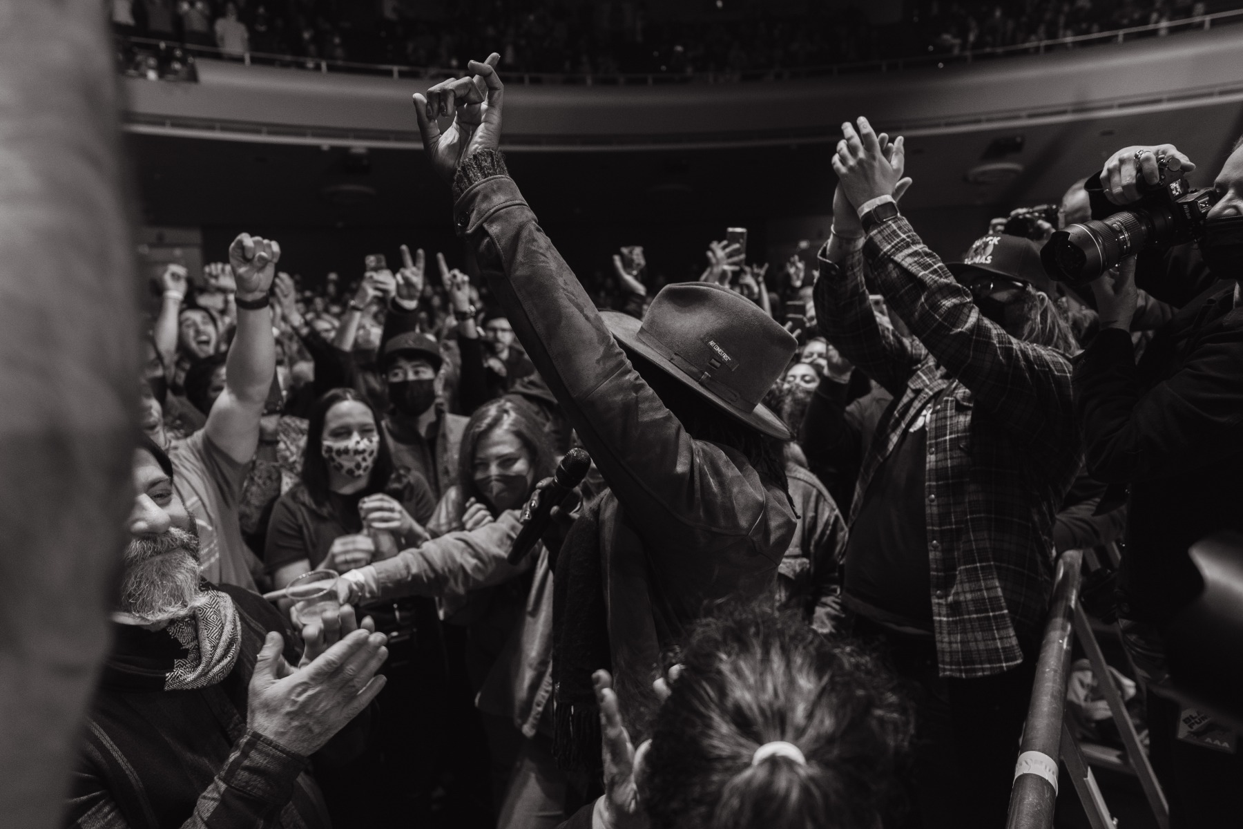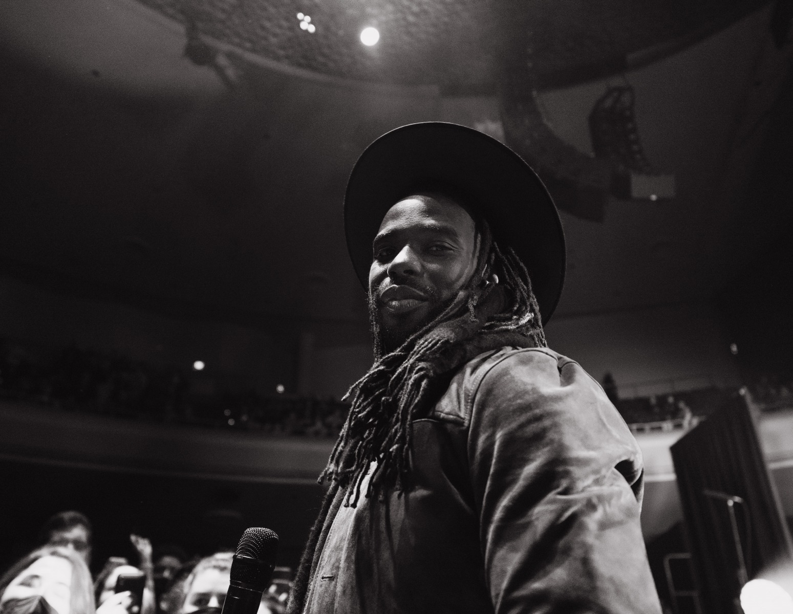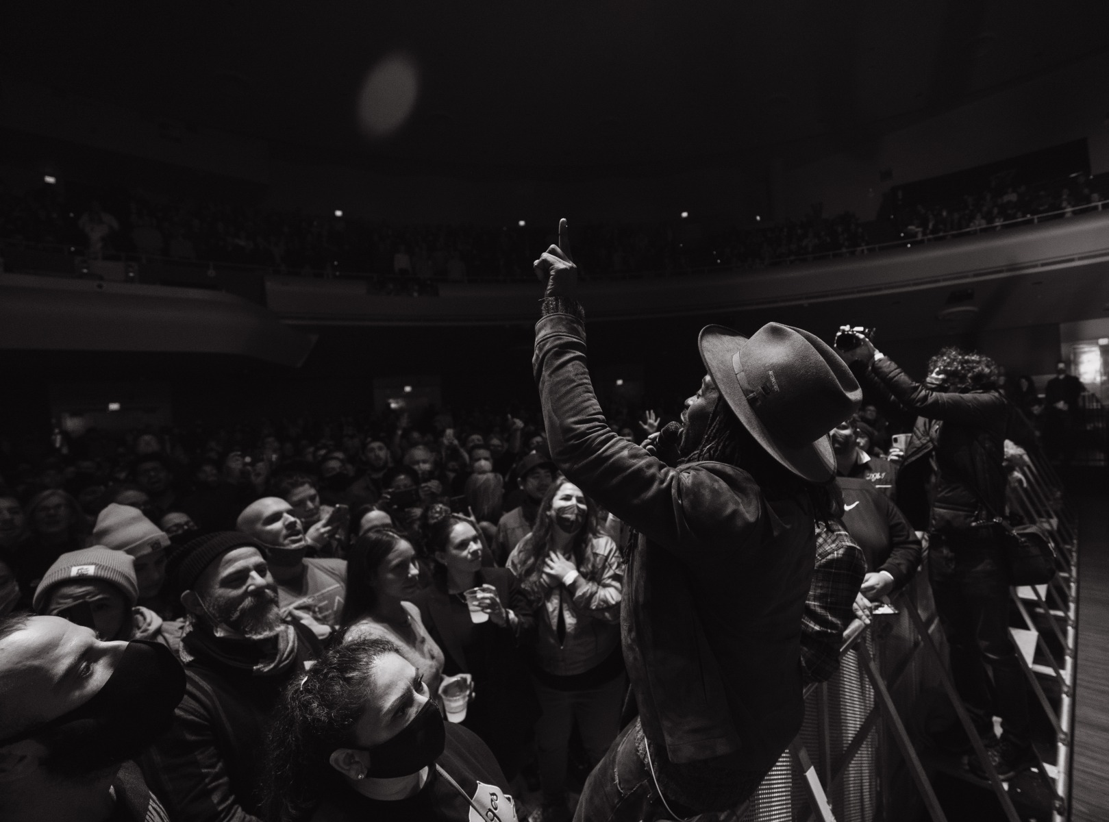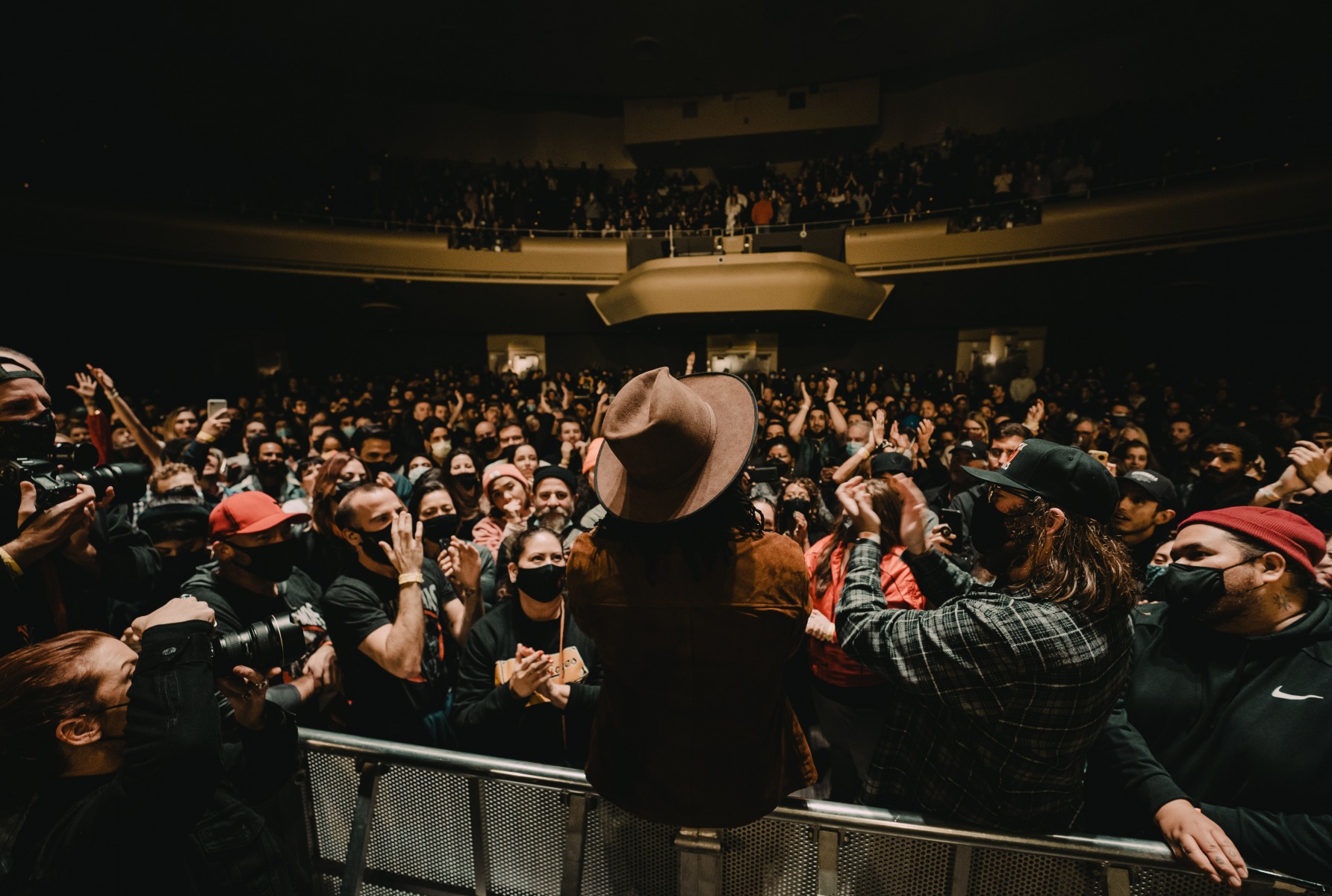 As the holiday season and rain roll into San Francisco on an early December night, Black Pumas took the stage to an energetic crowd at the SF Masonic in San Francisco, CA. The Austin-based rock band – made up of vocalist Eric Burton and guitarist Adrian Quesada – are currently on an extended US fall and winter tour in support of their debut album, Black Pumas. The band was just nominated for three Grammys, including album of the year for Black Pumas (Deluxe Edition), and both record of the year and best American roots performance for the track “Colors.”