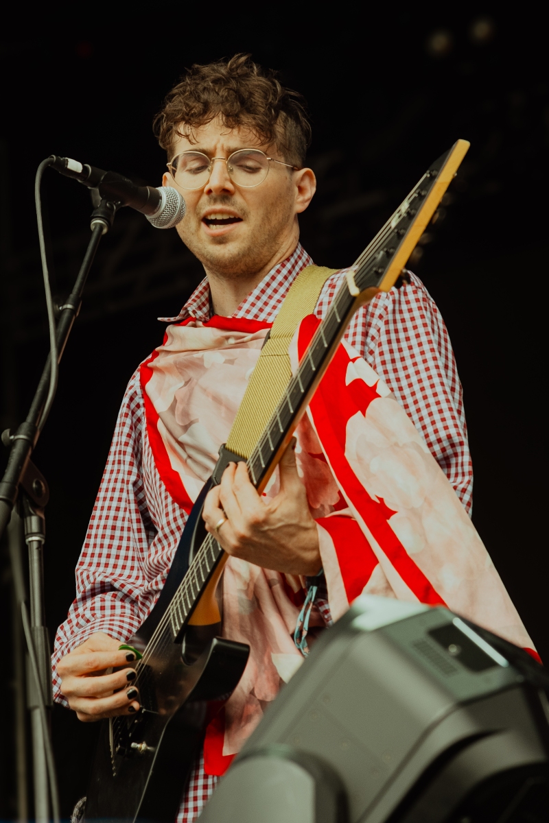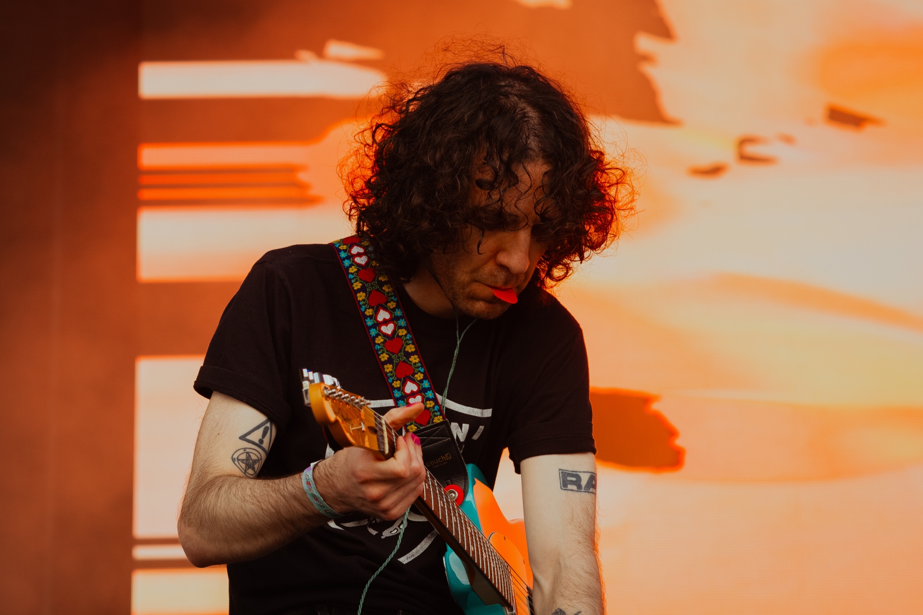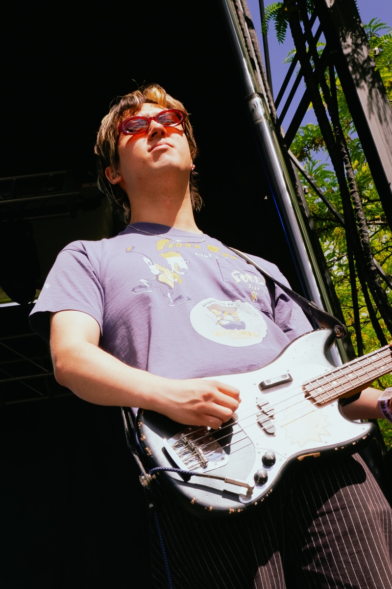 As we roll into day 3, the weather took a slight turn, our first rainy day of the festival.  Fortunately, it was nothing too intense, with only light showers passing through now and then. Festivalgoers didn’t seem fazed. Dressed in their usual colorful attire, many stayed warm by dancing, beers in hand and spirits high. This day’s lineup was another standout, featuring George Clanton, Panda Bear, Montell Fish, Wisp, Wallows, and of course, the legendary Weezer.