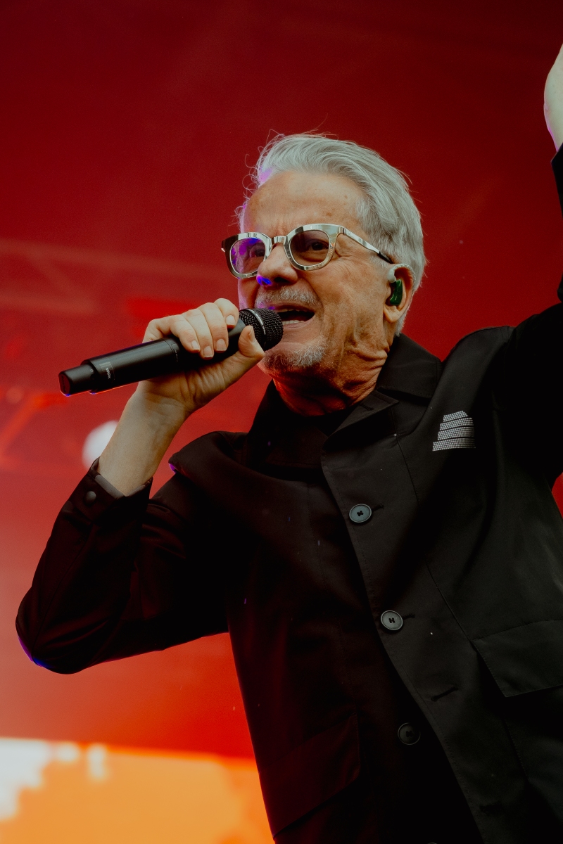 After Devo, the crowd surged toward the Kilby Stage, eager to get as close as possible to the iconic alternative legends, New Order. Fans leaned against the barricade with tears in their eyes and screamed with joy as the band appeared under a wash of soft blue and violet lights. What followed was a moody, atmospheric set elevated by a mesmerizing display of LED visuals that bathed the audience in color. Just when the night couldn’t get any better, the band introduced a surprise guest, Brandon Flowers, the beloved frontman of The Killers. The crowd roared with excitement as Brandon Flowers joined New Order with a performance of “Bizarre Love Triangle.” It was a surreal, once-in-a-lifetime moment, and a collaboration that one could only dream of.