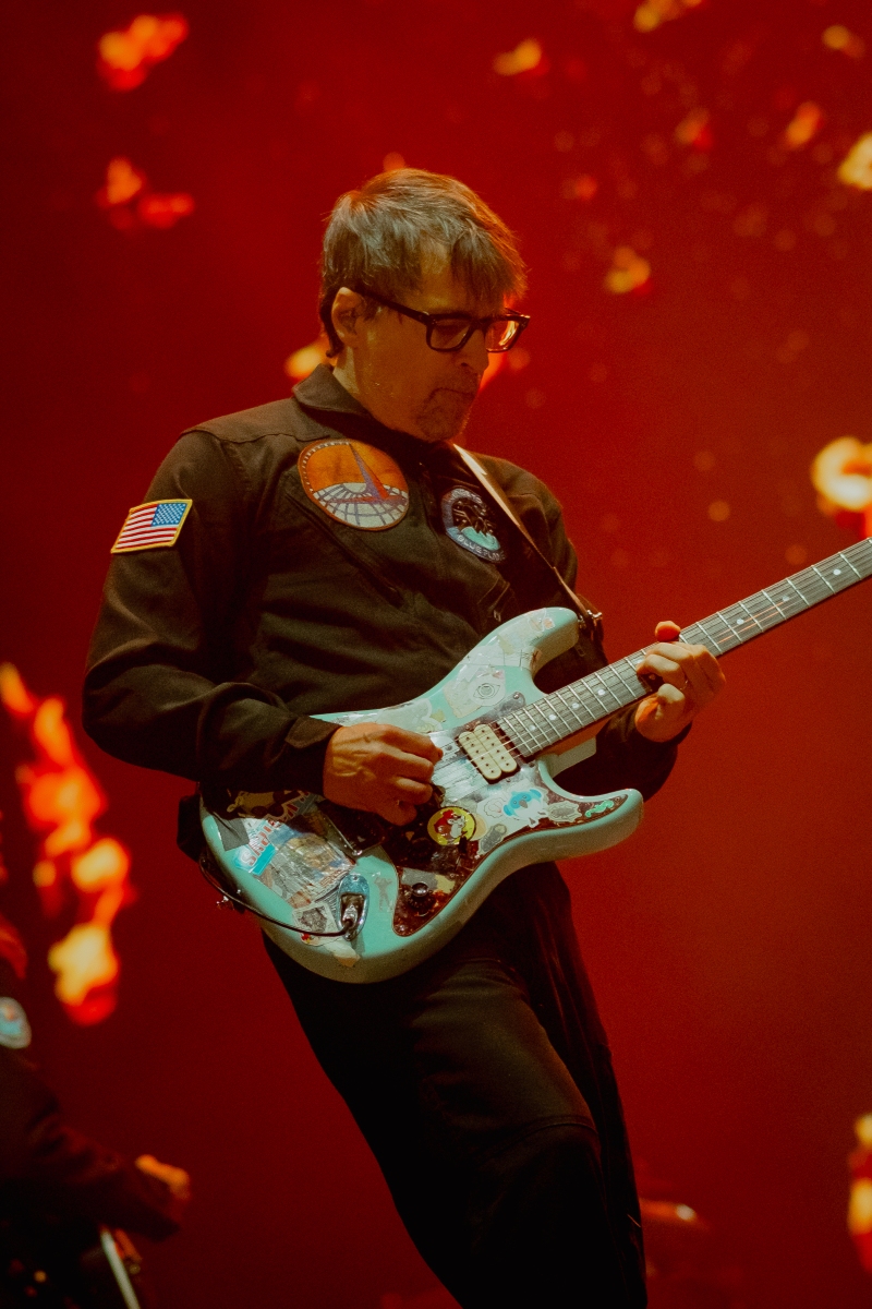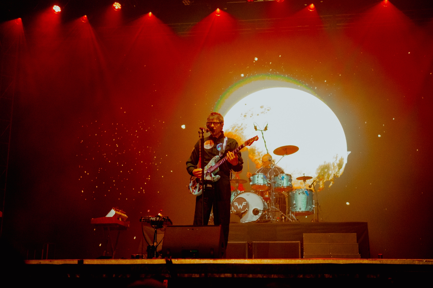 As the evening set in and fans made their way toward the Kilby Stage, excitement buzzed in the air. A large countdown clock appeared on the screen, building anticipation for the night’s headliner, Weezer. With each passing second, the crowd grew louder and packed tighter. Fans stood on their tippy toes as the countdown came to a close and were greeted with a pre-tape of Weezer as astronauts preparing for takeoff. This really set the tone for the rest of their set.