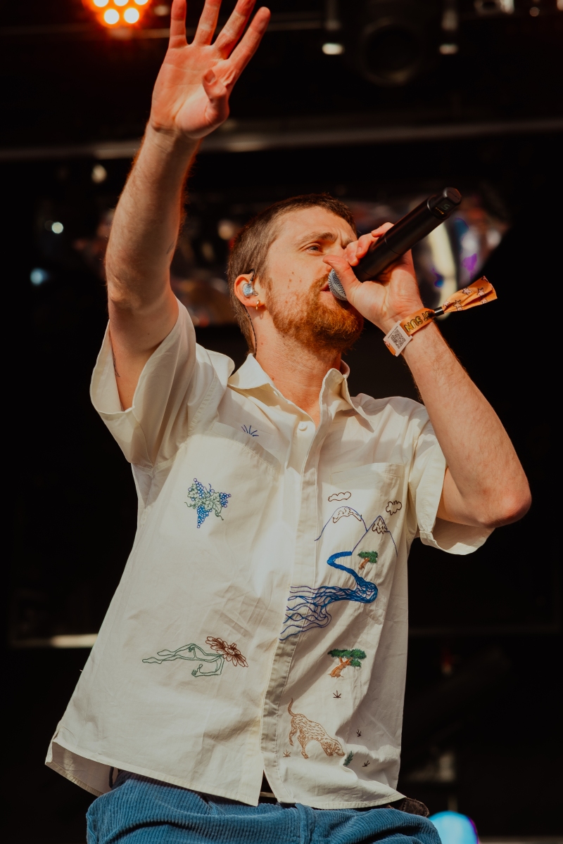 As we roll into day 3, the weather took a slight turn, our first rainy day of the festival.  Fortunately, it was nothing too intense, with only light showers passing through now and then. Festivalgoers didn’t seem fazed. Dressed in their usual colorful attire, many stayed warm by dancing, beers in hand and spirits high. This day’s lineup was another standout, featuring George Clanton, Panda Bear, Montell Fish, Wisp, Wallows, and of course, the legendary Weezer.